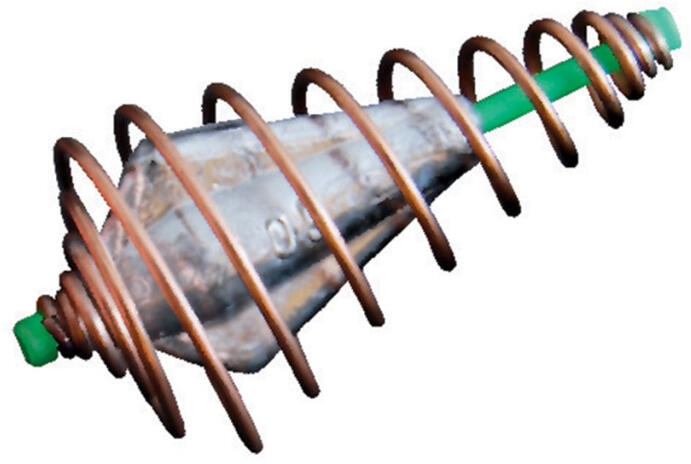 Kúpos, spirál etetőkosár szárnyas ólommal fenekező horgászoknak ponty, amur és keszeg horgászatához.