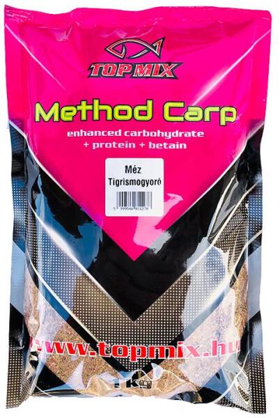 A Method Carp etetők jellemzője, hogy a finom szemcséket lecseréltük nagyobb méretűre és nyers összetevőket nem használunk a gyártásánál. Sok benne a színes, a halak kíváncsiságát is felkeltő szemcse. Az új gyártástechnológiából adódó összetevők, a nagyobb szemcseméret igen gyors bontást eredményeznek és segítenek abban, hogy az igazi nagytestű halakat is horogra tudjuk csalni. Megfelelő nedvesítés mellett az etetők tapadása és bontása is tökéletes. A jól kiegyensúlyozott beltartalom (szénhidrát, protein, betain) vonzó táplálék lehet a pontyoknak, pontyféléknek, minden évszakban. Méz és tigrismogyoró külön is a pontyhorgászok kedvencei, tapasztalataink alapján azonban ezek kevert íze kimagaslóan teljesít. Nagytestű halak horgászatánál igazi csemegének bizonyult. Aromája, feltűnő színei és szemcsemérete mellett beltartalmi értéke is tovább fokozza csalogató hatását, köszönhetően a benne található szénhidrát, protein és betain tartalomnak. Igazi nagy hal csemege, vadvízen és intenzív tavakon egyaránt!